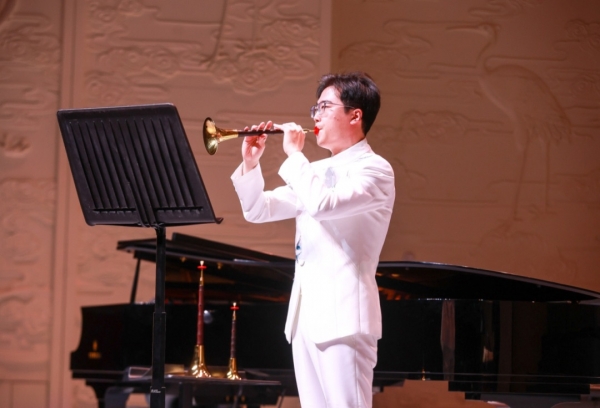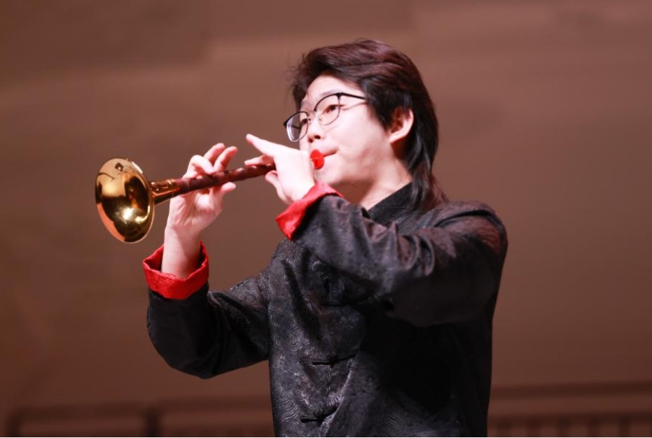 在“焦桐丹心”唢呐教学汇报音乐会上,中国音乐学院侯苏原与钢琴打击乐共同完成《恣逸》的演奏。核心曲目《姿逸》的演绎尤为深刻,这首作品兼具传统唢呐的醇厚音色与现代音乐的灵动韵律,侯苏原在演奏中精准把控快慢节奏的转换,将唢呐的延展性与表现力发挥到极致,通过细腻的气息控制和技巧处理,诠释出乐曲“自在舒展、意蕴悠长”的核心意境。以“焦桐丹心”的精神为底色,《姿逸》的灵动与音乐会整体的厚重相得益彰,与团队的默契配合让音乐表达更具层次。