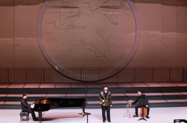 唢呐奏响《梁山随想》,非遗乐韵传新声。演奏者黄爽携手赵硕、杨博雯,共同演绎唢呐协奏曲《梁山随想》。这部由张晓峰创作的作品以《水浒传》为题材,融入山东民间音乐素材与戏曲韵味,凭借高难度演奏技巧展现出深厚的民族文化内涵,为唢呐艺术创新开辟了新路径。演出中,高亢婉转的乐声勾勒出梁山好汉风骨群像,让观众在沉浸式的乐声中深切感受传统音乐的磅礴力量与文化温度。