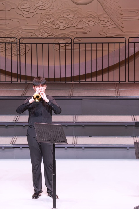 焦桐丹心音乐会现场,二年级学子陈泓涵倾情加入。在张倩渊老师悉心指导与精心排练下,国音唢呐学子们携手陈泓涵同学,共同奏响经典曲目《赛马》迎接马年的到来。激昂唢呐乐声里,不仅蕴含着辞旧迎新年的喜气欢腾,更有着薪火相传的动人画面,年长学子与少年新秀并肩演奏,让唢呐艺术的火种生生不息。这不仅是一场精彩演出,更是民乐传承的接力,见证着唢呐艺术在一代代少年手中延续荣光、绽放新彩。