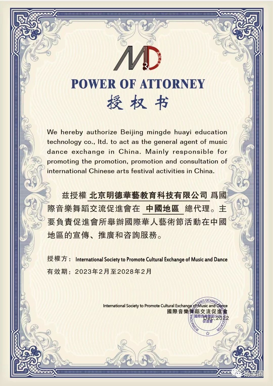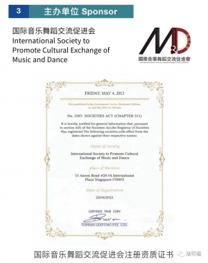 国际音乐舞蹈交流促进会注册资质证书