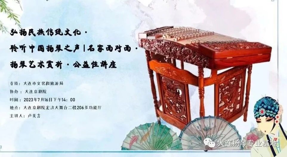 弘扬民族传统文化,聆听中国扬琴之声。为了给大连扬琴爱好者和学习者提供一个专业的学习交流的平台,由大连市文化和旅游局支持、大连京剧院协办,大连青年扬琴演奏家、教育家卢美含倾情打造了“弘扬民族传统文化·聆听中国扬琴之声|名家面对面·扬琴艺术赏析·公益讲座。”