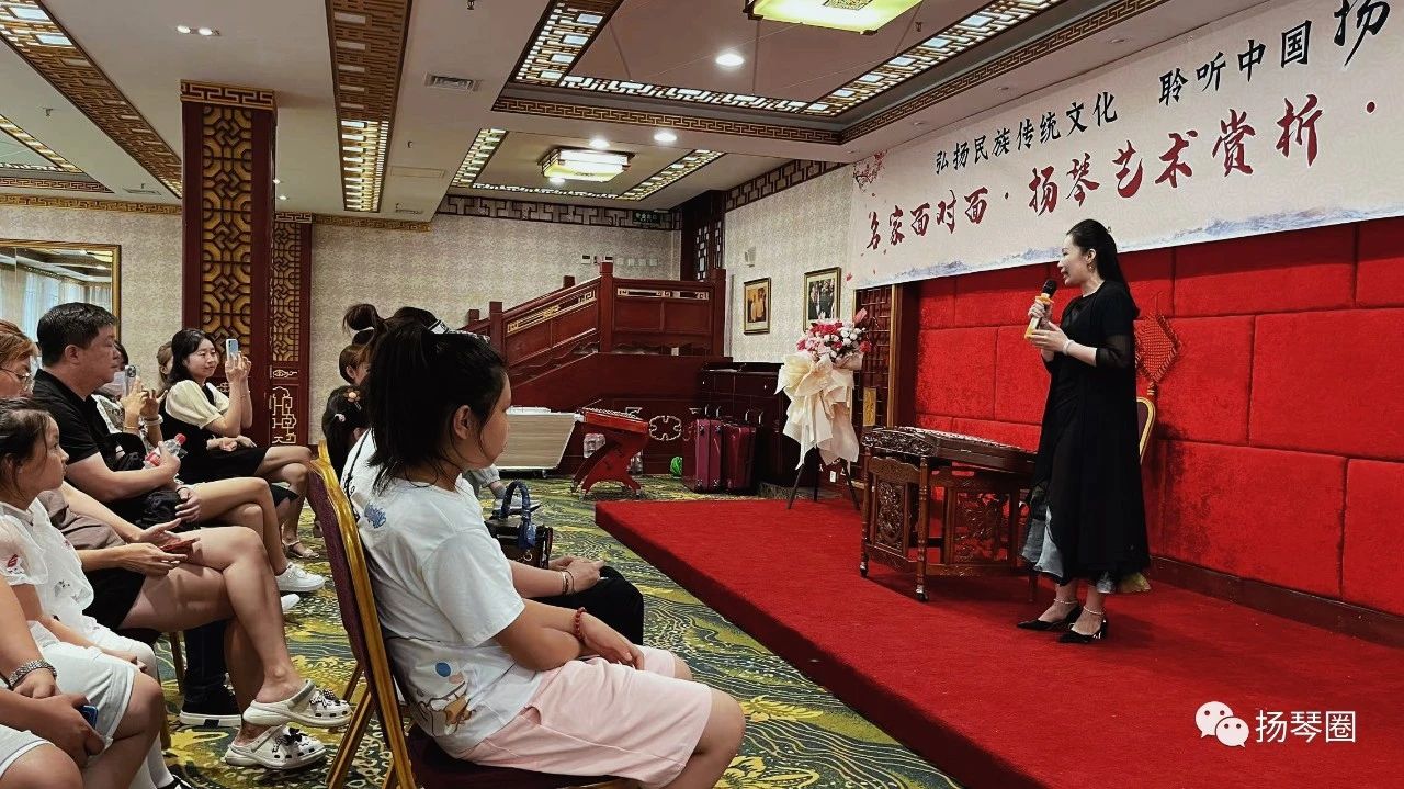 讲座现场,卢美含和大家分享了扬琴的历史及演变过程。介绍了扬琴鲜明的传统民族性特点、发展脉络、以及戏曲题材京剧打击乐元素在扬琴作品中的体现。卢美含介绍,扬琴是中国的传统民族乐器,具有悠久的历史和深厚的文化底蕴,与钢琴同宗,更素有“中国钢琴”的美称。它自丝绸之路传入中国,是中华民族传统文化不可或缺的一部分。