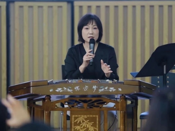 李玲玲教授以“顺竹法理念在扬琴教学中的运用及意义”为讲座主题,分别从关于扬琴“竹法”理论发展简述、现代作品中的竹法运用、“顺竹法”训练方式和“顺竹法”理念在现代扬琴教学中的运用与意义四个板块,讲授了传统的竹法理论及运用,示范了不同竹序演奏出的不同音效、“二位音”和技法在现代扬琴音乐作品中的运用,并教授了该理念的实践训练方法。