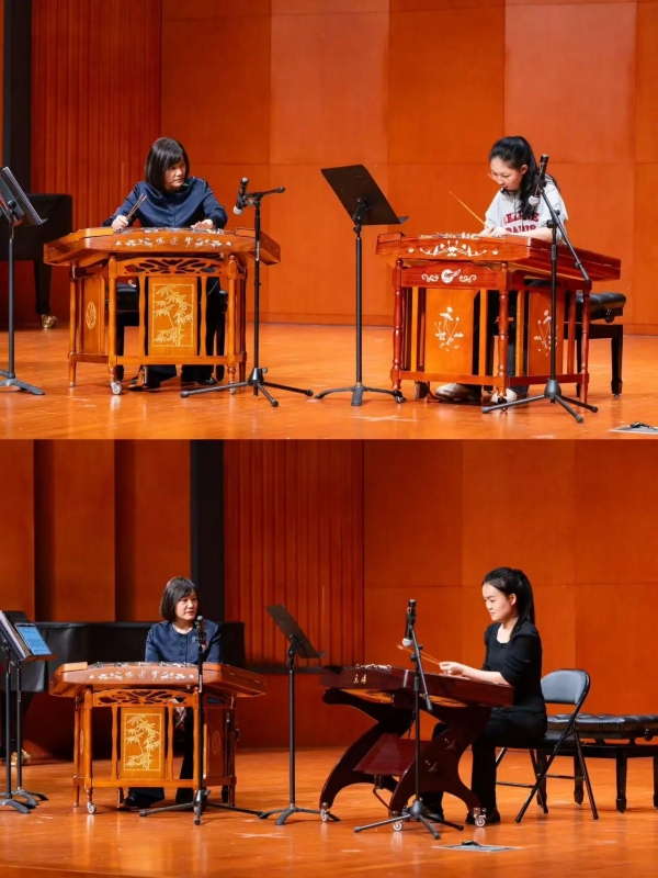 理论阐述之后,大师班进入了精彩的现场指导环节。五位我校扬琴专业的优秀学子依次登台,呈现了一场风格多元、技巧精湛的小型音乐会。演奏曲目涵盖了《林冲夜奔》《瑶山夜画》等传统、民间、改编及现代创作等不同风格。