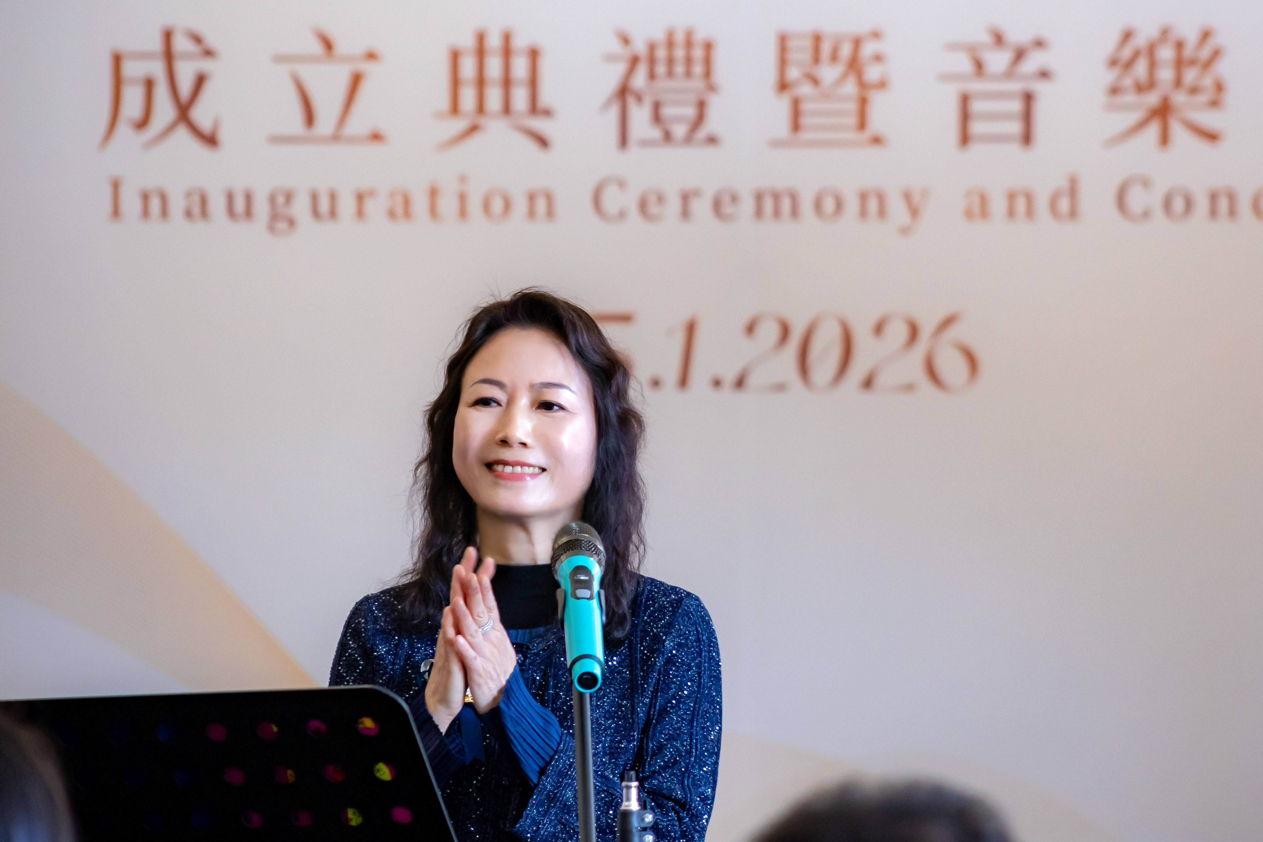 陈晓蓉老师在致辞中回顾了四十余年扬琴教学历程,她先后于文化学会中乐训练班、澳门演艺学院持续教学,培养数百学生,见证澳门扬琴从萌芽到蓬勃发展,对学会成立深感欣慰。她强调学会凝聚众人努力与使命,期待在叶凯莹会长带领下创造新辉煌。