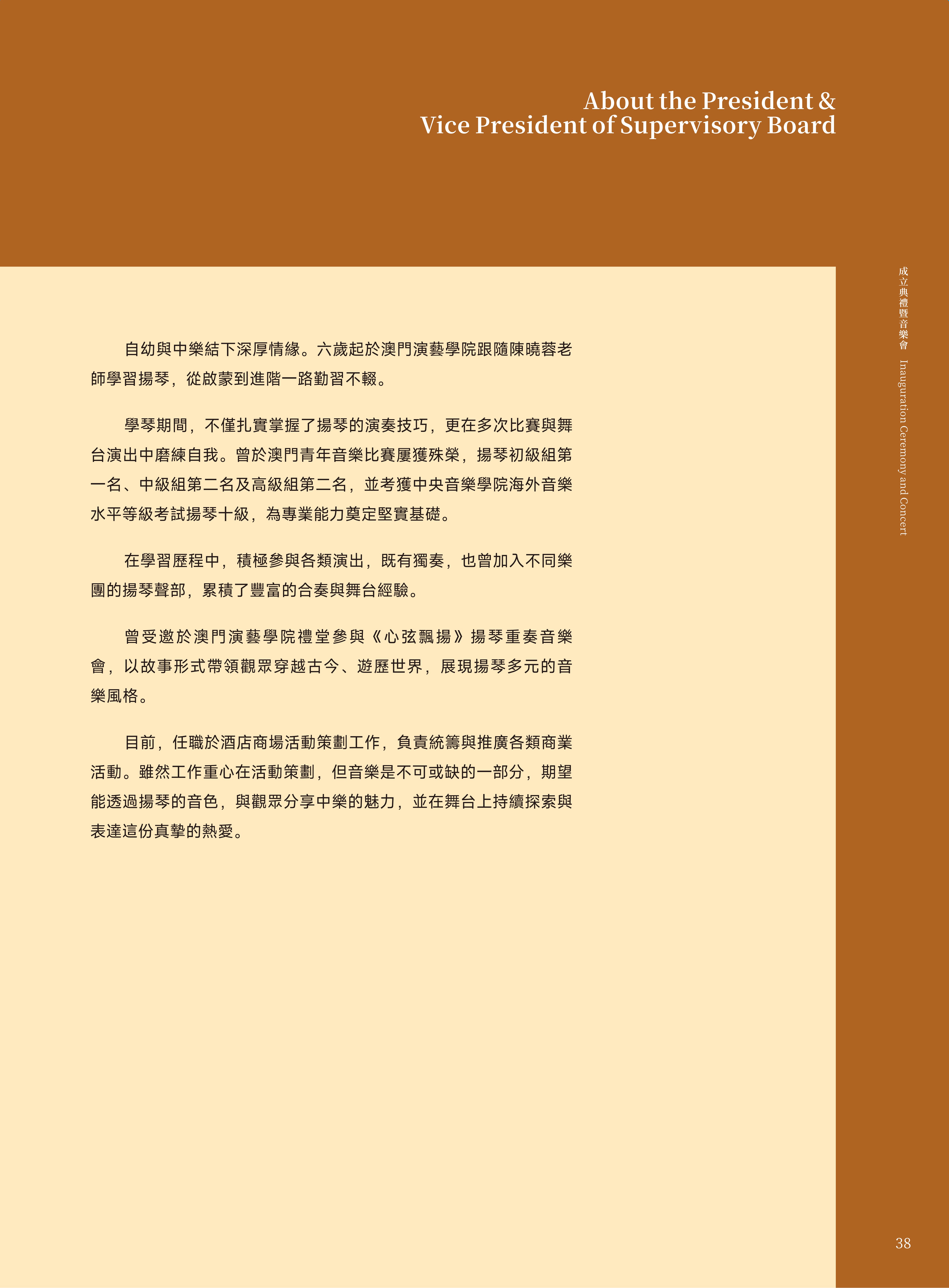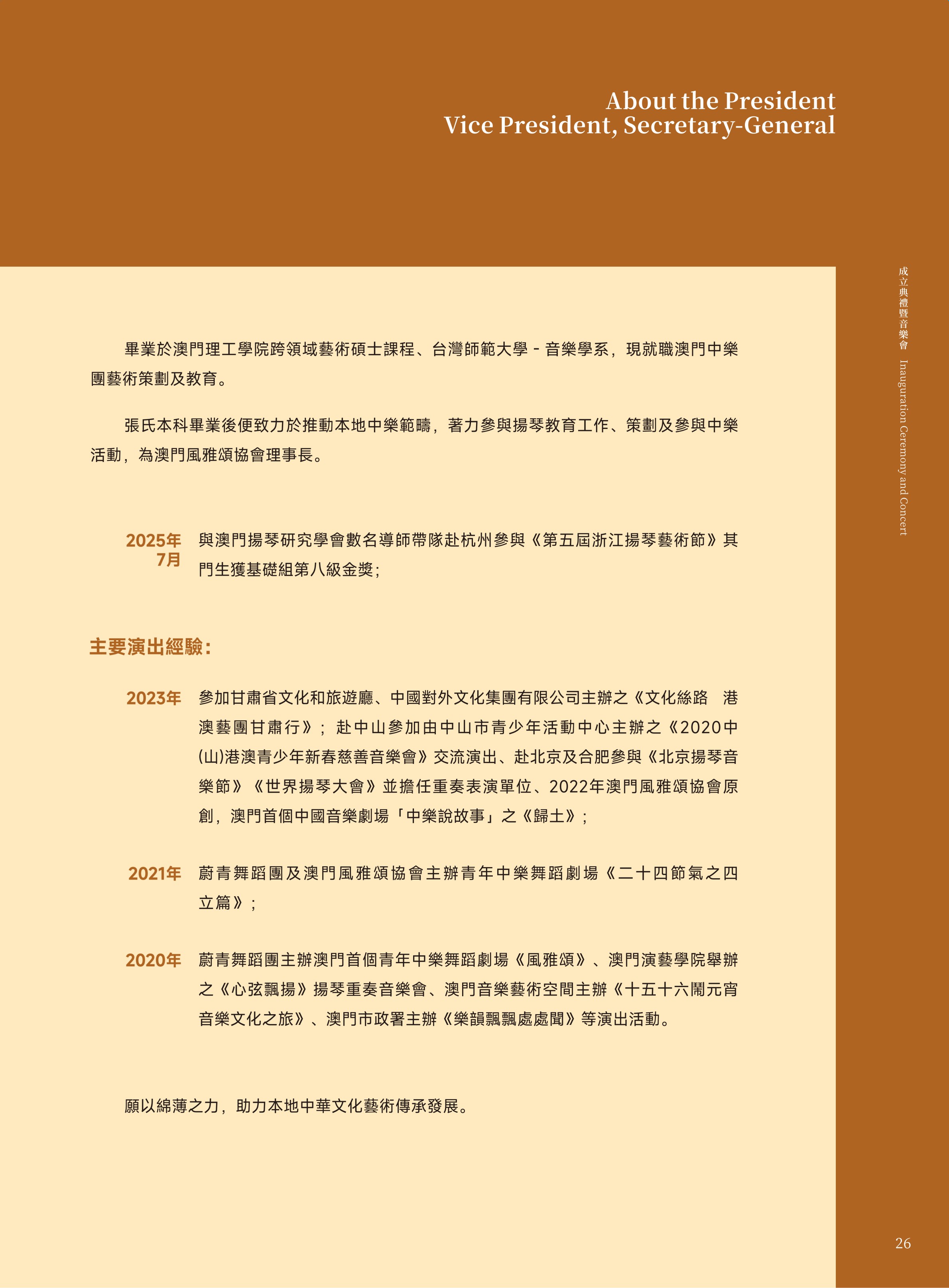 恭喜澳门扬琴研究学会成立!今天的演出真的太精彩了!老师们技艺精湛,每一首曲子都扣人心弦,让我对扬琴有了耳目一新的体悟。也非常感谢各位老师们平日的悉心教导和辛苦筹备,相信学会在各位老师们的带领下,未来一定会发光发热!