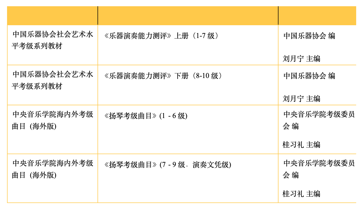 *曲目需根据下列教材所㨂选 (小小演奏家组﹑广东音乐组﹑专业组及重奏组除外) , 所选乐曲的级数按所选教材的分类为准。