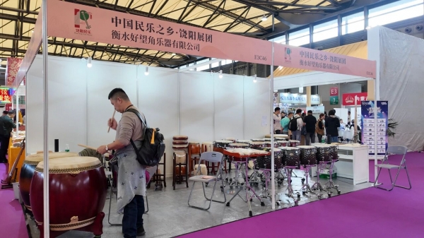 饶阳县民族乐器产业协会这次在县委、县政府的支持下,组织了30多家企业来到本届展会。我们饶阳拥有130多家民族乐器企业、6000多就业人口的产业基地,年产值达2亿元,为传承中华文化和地方经济文化发展作出了重要贡献。