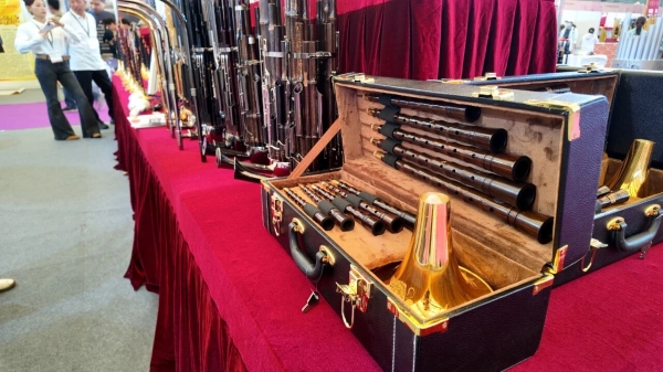 面向专业领域的“宏艺观云”系列则体现了匠心工艺:由20年经验的老师傅精选材料制作,每件成品需经专业演奏家试吹调音,并支持定制化服务。目前全国12所专业院校的师生都有在使用我们的产品的。
