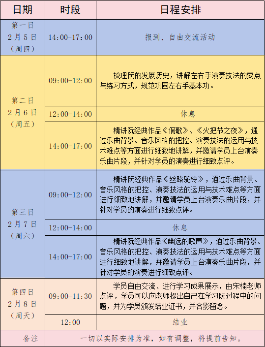 4.学员需自备乐器。