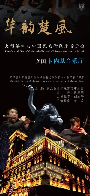 第五届“长江之韵·世界知名音乐艺术院校交流展演季” 闭幕式音乐会:武汉音乐学院“华韵楚风——大型编钟与中国民族管弦乐音乐会”将于12月25日(星期六)晚7:30在中国中央广播电视总台央视频新媒体平台、哔哩哔哩、抖音直播(直播入口二维码附后)。本场音乐会由著名指挥家、“楚天学者”特聘教授彭家鹏执棒,著名二胡艺术家胡志平教授、竹笛艺术家荣政教授与武汉音乐学院东方中乐团联袂献演。