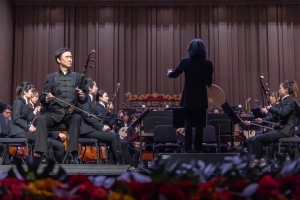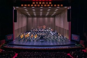 新年伊始,东太湖迎来春之声。1月1日晚,由著名指挥家、苏州民族管弦乐团艺术总监兼首席指挥彭家鹏执棒,著名二胡演奏家、乐团艺术指导朱昌耀,著名大提琴演奏家康乔瑄与苏州民族管弦乐团的青年演奏家们共同演奏的“丝竹里的江南”——苏州民族管弦乐团新年音乐会在苏州湾大剧院奏响。本场音乐会是“2021首届苏州湾歌剧舞剧节”的重要演出,在新年的欢乐时刻,为市民献上兼容并蓄的江南音乐听觉盛宴、送上美好的新年祝福。