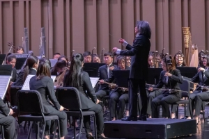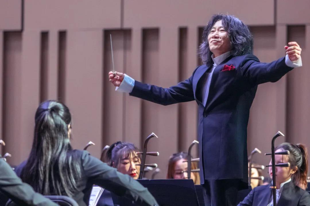 随后,乐团以激情洋溢的旋律诠释了具有浓郁民族音乐气韵的中国管弦乐版《北京喜讯到边寨》,将苗、彝等少数民族歌舞音调塑造音乐形象展示在观众面前。强烈的节日欢乐气氛随之充满整个现场。