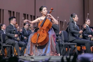 著名二胡演奏家朱昌耀和特邀大提琴演奏家康乔瑄分别演绎了享誉世界的二胡名曲《二泉映月》和创新演绎的大提琴协奏曲《楚颂》,让观众在民族音乐的继承和发扬中感受到生生不息的力量。朱昌耀用音乐为大家描绘出一幅夜阑人静、泉清月冷的意境,《二泉映月》催人泪下;康乔瑄在《楚颂》中用西方乐器完美演绎了中国故事“霸王别姬”,以中西合璧的创新艺术表现形式进一步激发了观众的赏乐热情。