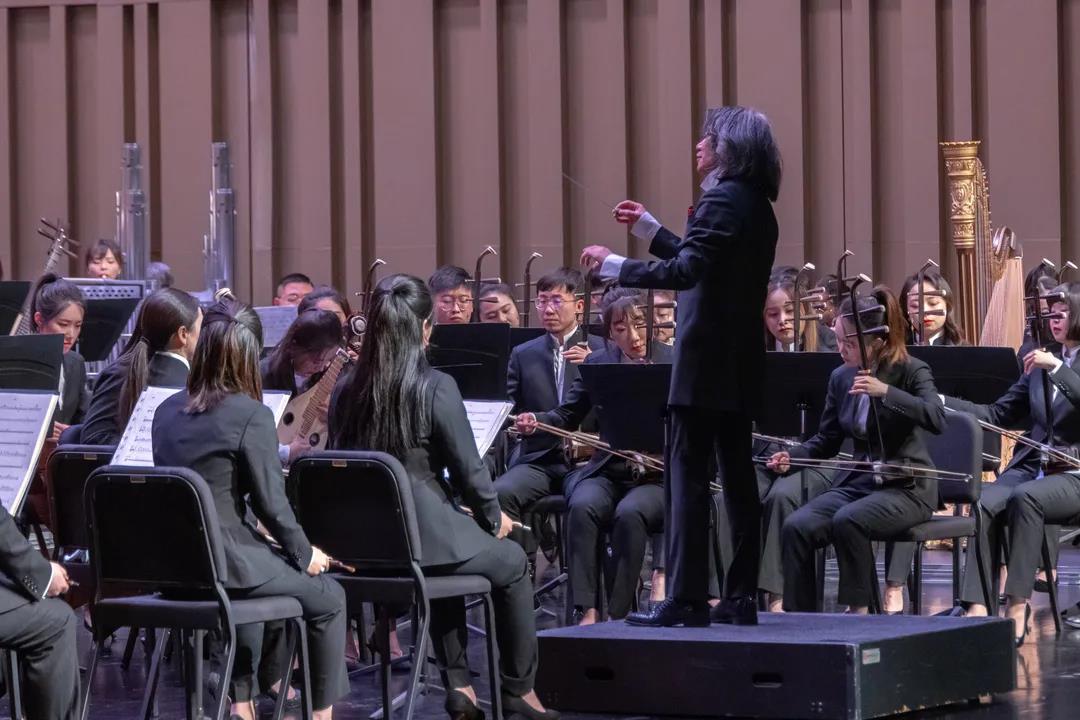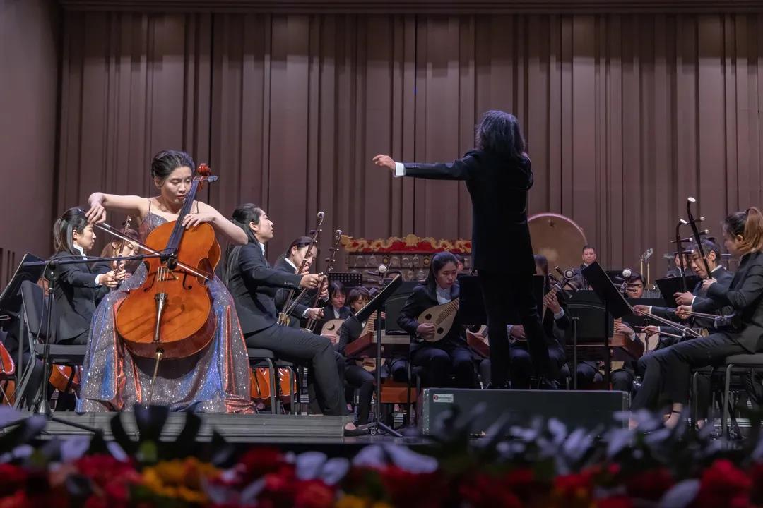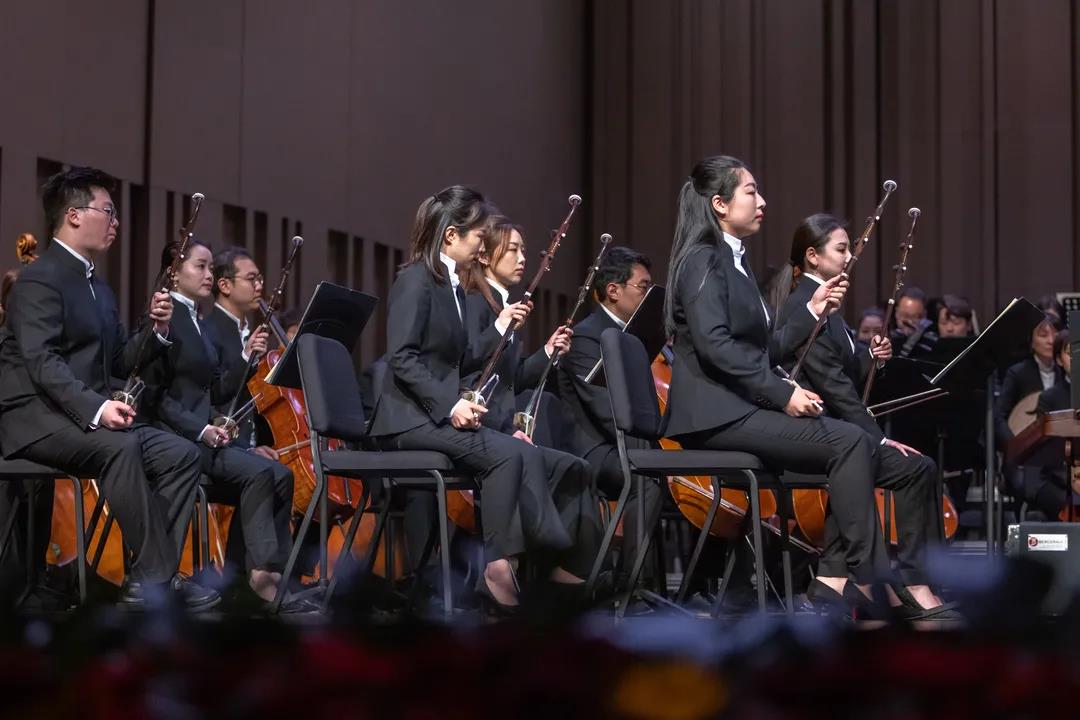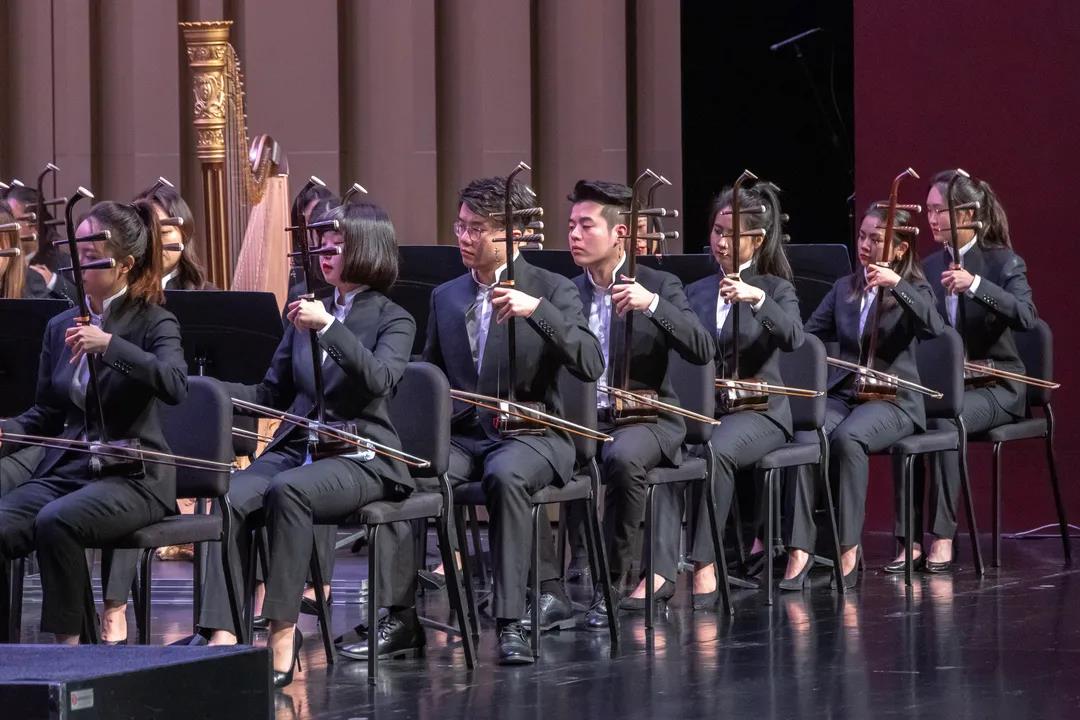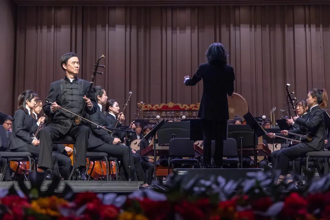 音乐会精彩纷呈。在《威廉·退尔》序曲、《乡村骑士》间奏曲、《斯拉夫舞曲》等西方交响乐名曲的中国民族管弦乐版改编作品联奏中,演奏家们以耳目一新的音乐表达形式,向观众呈现了中国民族音乐与西方交响乐完美融合的艺术效果,展现了丝竹交响的强大包容性。