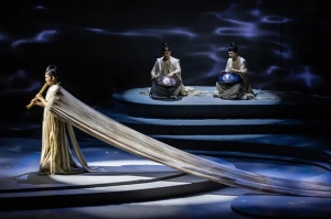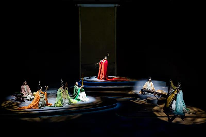 第一篇章《风·古风自然》:八千年的骨笛吹响《汲古》的悠远音色,三千年的古琴奏出响《流水》的自然回响,笙笙《和鸣》是“和”的意象表达,更是对壮丽河山的大爱;