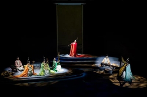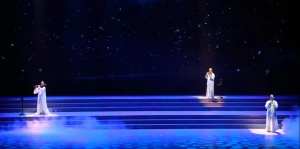 第三乐章《颂·千古之爱》,通过《梁祝》《别姬》《惊梦》三首民乐与戏曲的结合,讲述爱情这一永恒主题,引申为对生命的吟唱。