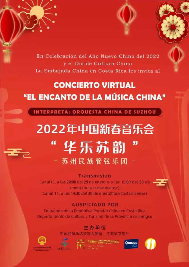 在哥斯达黎加,作为我国驻哥斯达黎加使馆2022年“欢乐春节暨中国文化日”系列活动的重要组成部分,由驻哥使馆与江苏省文旅厅、苏州民族管弦乐团合作举办的“华乐苏韵”新春主题音乐会为当地华人华侨献上了丰盛的视听“年夜饭”。