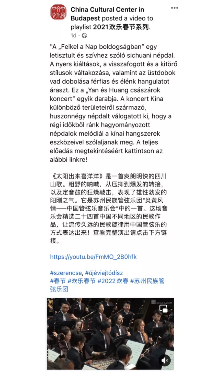 元宵佳节,苏州民族管弦乐团还参与了由欧洲时报主办的“维城云上2022元宵音乐会”,通过微博、Bilibili、YouTube等平台与海内外乐团共享节日中的愉悦心情和万民欢腾的节日气氛。