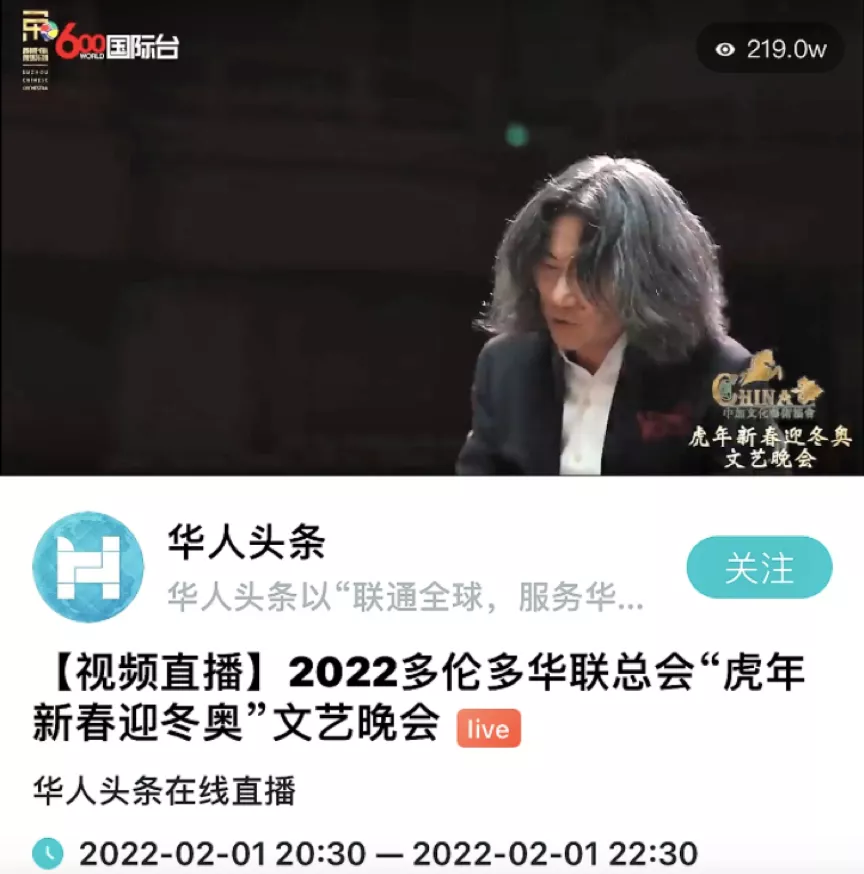 此外,由第六届蒙特利尔“欢乐春节”庙会2022春节云晚会也分别在大年初一和元宵节举行,并特邀苏州民族管弦乐团艺术总监兼首席指挥彭家鹏任晚会艺术总监,在乐团演绎的《节日序曲》中拉开海内外艺术家精彩表演的序幕,为当地华人华侨献上春节最真挚的祝福。