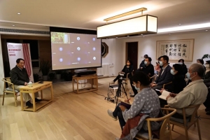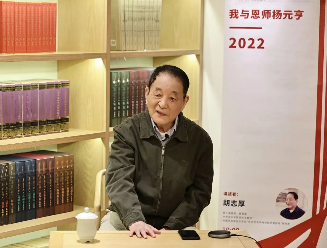 2022年4月11日晚,第四期“华乐讲坛”如期在中国民族管弦乐学会艺术发展研究中心举行。著名管子演奏家、教育家、中央音乐学院教授、中国民族管弦乐学会“民乐艺术终身贡献荣誉称号”获得者胡志厚先生开讲《我与恩师杨元亨》。考虑到当前北京疫情防控要求,讲坛在现场进行的同时开通线上直播。中国民族管弦乐学会会长吴玉霞、副秘书长宋阳、《中国民乐》报执行总编辑刁艳和中国音乐学院教授刘勇、中央音乐学院副教授兰维薇、中国歌剧舞剧院民族乐团团长栾冬、副团长雷靛云等代表以及驻会人员共同聆听讲坛。
