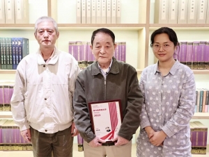吴玉霞会长为胡志厚教授颁发“华乐讲坛”纪念海报