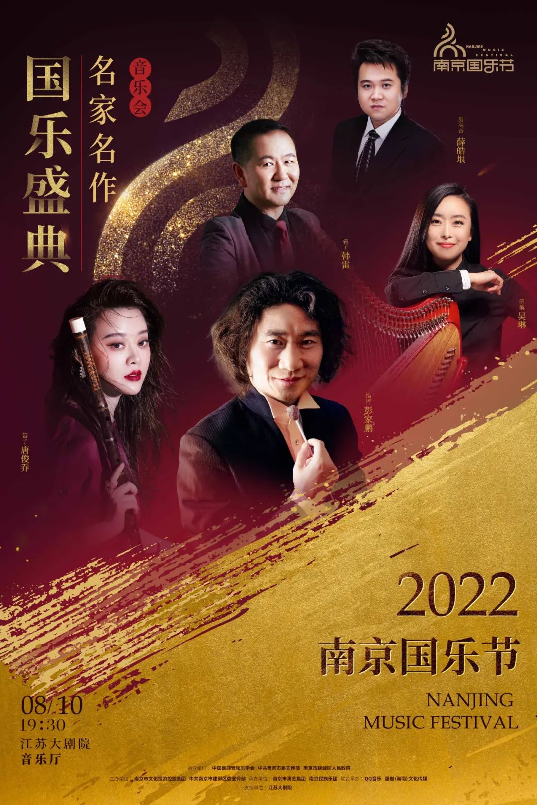 即将到来的8月10日《国乐盛典——名家名作音乐会》更是众星云集,特邀著名指挥彭家鹏、管子演奏家韩雷、竹笛演奏家唐俊乔、箜篌演奏家吴琳、男高音歌唱家薛皓垠等一众艺术家出演,以精湛技艺呈现中国老、中、青三代知名作曲家施万春、赵季平、唐建平、刘长远、叶小钢和李劭晟的作品,献予金陵一场难忘的艺术盛宴。