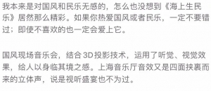 由于疫情防控,观众们按照50%上座率间隔就坐观演,但现场依然热情满满。许多观众都表示:国风音乐现场《海上生民乐》颠覆了大家对传统民乐的固有印象——