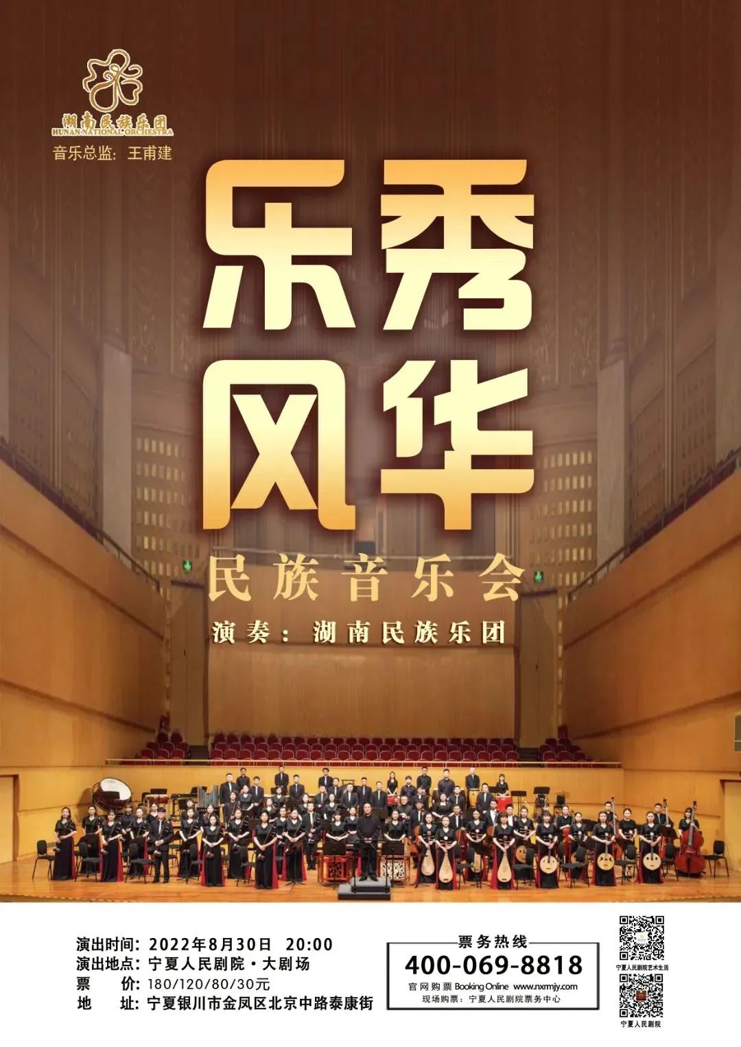 8月30日,湖南省演艺集团“湘”遇宁夏《乐秀风华》民族音乐会即将在银川宁夏大剧院上演。国乐秀风华,湖南民族乐团将用精彩民乐诠释多样浪漫,奏响塞上江南。