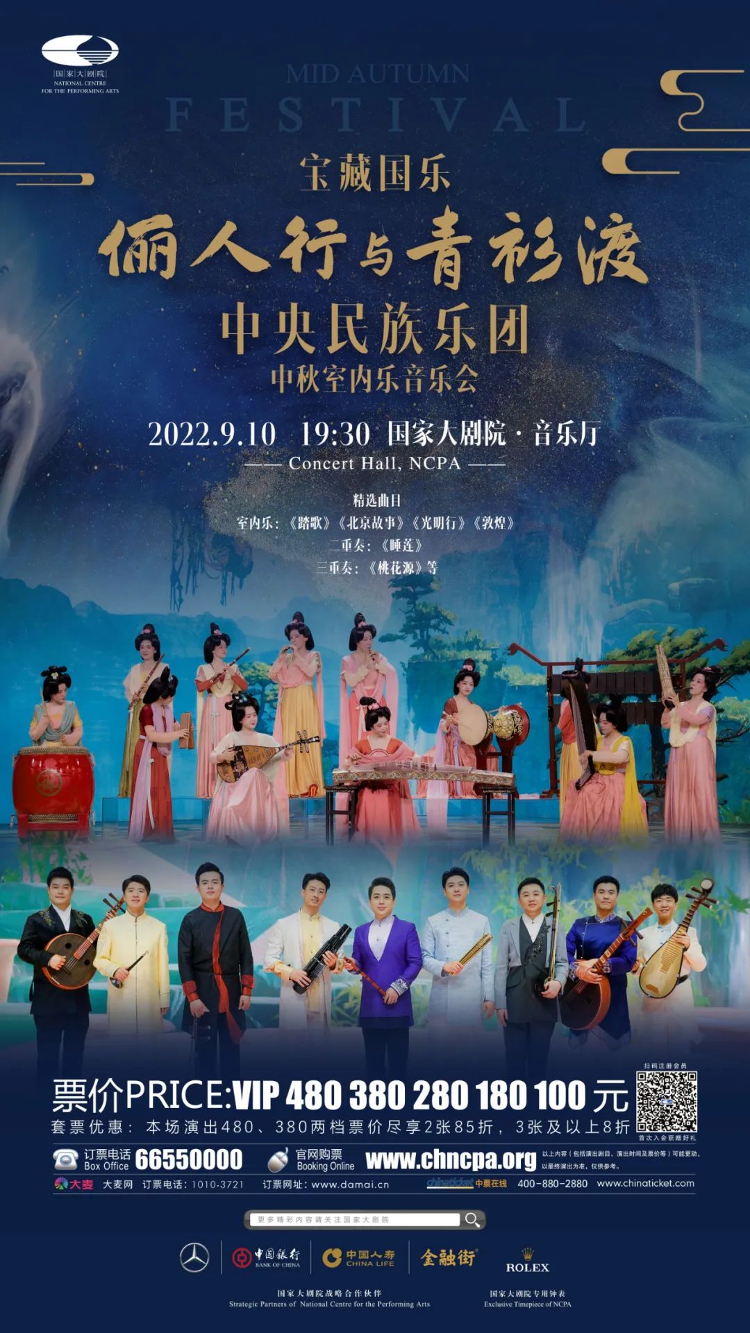 本场音乐会,“俪人行”“青衫渡”首次合体亮相公开演出,也是首次在国家大剧院音乐厅与观众见面,更是中央民族乐团《宝藏国乐》系列的首个舞台。他们将用经典之作与创新之篇,让您听到、看到不一样的国乐,为您的月圆之夜带去动人的旋律与美好的回忆。