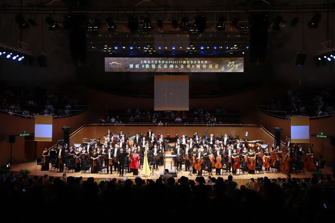 演出由长沙交响乐团终身荣誉艺术总监、指挥谭盾先生执棒长沙交响乐团,携手竖琴演奏家陈妤颖、筚篥演奏家刘雯雯、奚琴演奏家祝云琦、尺八演奏家杨博文、琵琶演奏家韩妍、唐笙演奏家张梦,献演交响作品《敦煌五乐神》《女书》,为上海东方艺术中心“艺游未境”2022/23秋冬演出季揭幕。