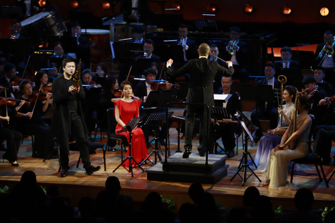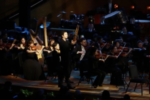 9月9日晚,湖南演艺全国行——“湘”遇系列演出谭盾×长沙交响乐团《敦煌五乐神&女书》在上海东方艺术中心精彩上演。