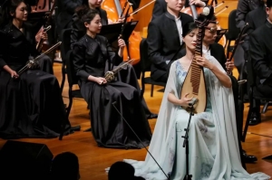 2022年9月20日晚,中国乐派“8+1、思政+X”课程体系本科教学曲目展演——中国音乐学院国乐系青年教师教学示范音乐会在国家大剧院精彩上演。本场音乐会由中国音乐学院院长王黎光教授担任艺术总监,由著名指挥家、中国音乐学院特聘教授邵恩执棒,携手国乐系青年教师团队张倩渊、程雨雨、商钟元、宋心馨、杨婷婷、谭蔚等六位优秀演奏家,联袂中央民族乐团共同呈现。指挥家、演奏家和乐团的精彩演绎获得了现场观众如潮的掌声与高度的评价。