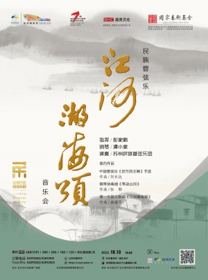 本场音乐会选取乐团委约当代著名作曲家唐建平、刘长远、张朝分别创作的三部中国管弦乐力作在长沙首演,由著名指挥家彭家鹏执棒,苏州民族管弦乐团用具有鲜明民族气质和民族精神内涵的丝竹管弦交响之声献礼党的二十大召开,盛赞祖国美好山河、歌咏百姓幸福生活,并充分展示乐团进行民族音乐管弦化、交响化艺术探索的最新成果。著名钢琴演奏家谭小棠倾情加盟献艺,用国际化主流音乐言语讲述苏州、江南和中国的故事。