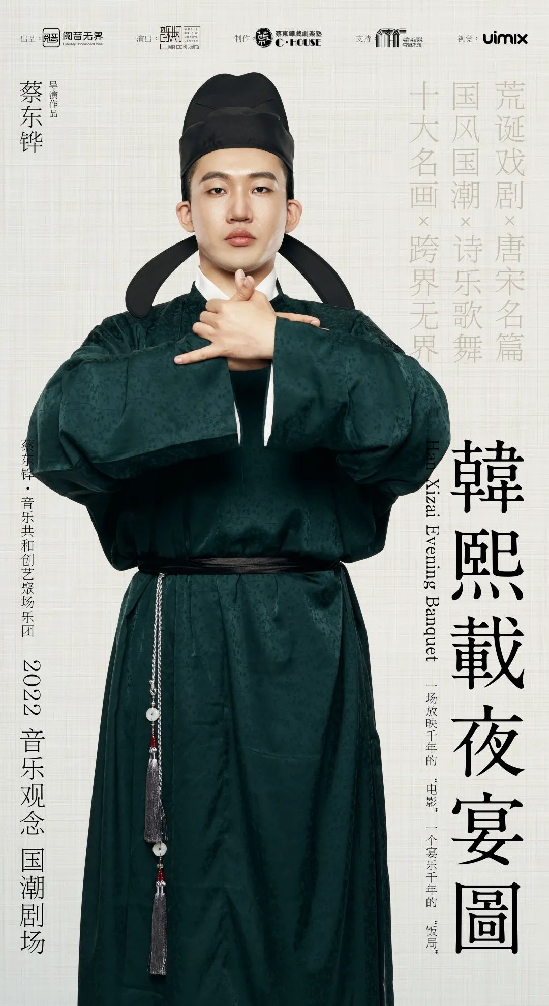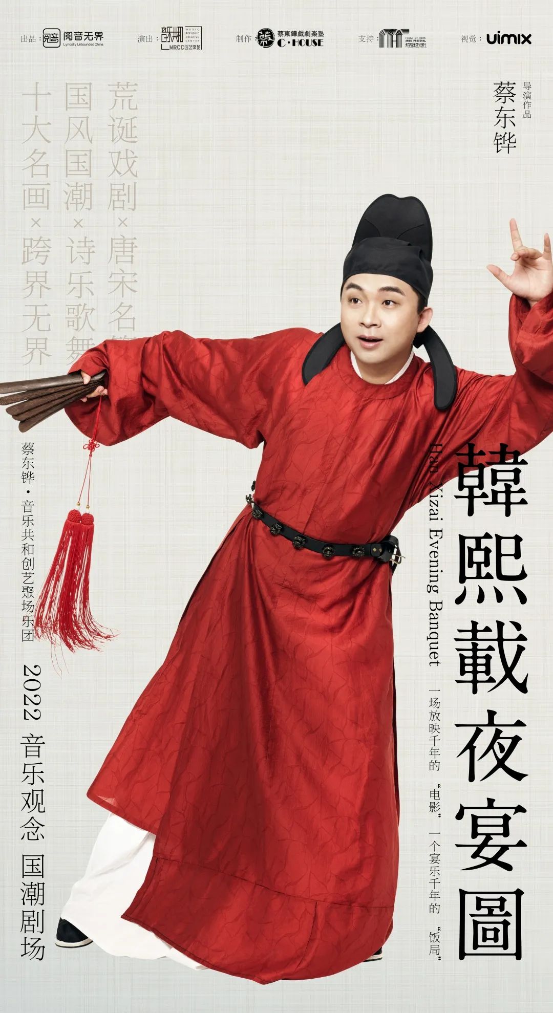 “春花秋月何时了,往事知多少”……一代词帝李煜李后主的《虞美人》一定家喻户晓,故事就是这样展开的。《韩熙载夜宴图》作为中国十大传世名画之一,要说它无人不知、无人不晓也绝不为过,它以连环长卷的方式描摹南唐巨宦韩熙载家开宴行乐的场景。正因为有了它,才让我们能得以一窥千年前南唐的衣食、乐舞和文化,它也把韩熙载和南唐李后主的故事以这种特殊的艺术形式保存至今。为了不让这份经典只停留在绢纸之上,音乐共和创艺聚场、阅音无界和华乐文化联袂制作了2022版国潮乐剧《韩熙载夜宴图》。
