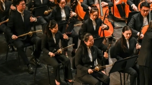 时而激情热烈、气势磅礴,时而轻柔细语、宛转悠扬……音乐会以一曲《国风》开场。该曲选自赵季平创作的《风雅颂之交响》,灵动活跃的变奏、丰富变换的和声,淋漓尽致地体现了“弘中国之风骨、扬民族之精神”的气魄。随后,一曲《畅想虎丘》翩然响起,这首作品由苏州民族管弦乐团委约著名作曲家徐昌俊创作,将虎丘在两千四百多年的时间跨度里的变迁、发生的重大事件用音乐表现出来,给听众带来对历史遥远的回想。