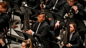 下半场,作曲家李滨扬创作的《吴越春秋》通过“吴越争霸、卧薪尝胆、越女之剑、干戈再起、壮哉江南”五个乐章引领观众走入了一幅恢弘雄壮的画卷,张弛有度、刚柔并济的交响之声,营造出厚重辉煌的音乐史诗。音乐会最后,《奔向光明》将现场气氛推至高潮。该曲由作曲家刘长远为致敬抗疫英雄而作,恢宏的旋律、磅礴的曲调,颂扬了不畏艰难、奋勇前行的抗疫精神,展现了中华民族坚强刚毅的信念与团结一致的决心。