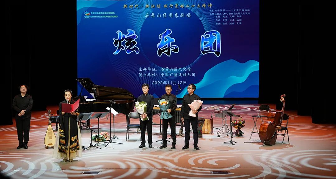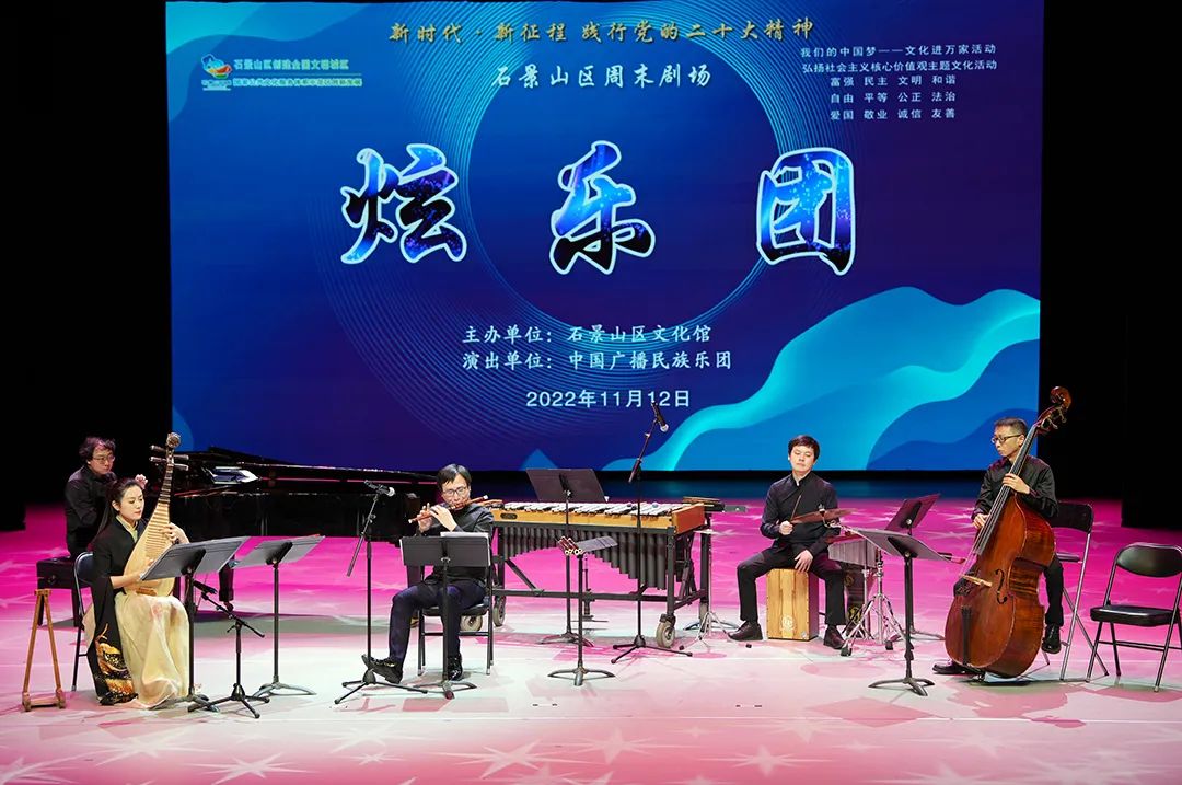 冬日的北京寒意渐浓,悦耳的音乐精彩炫动。11月12日,石景山区文化馆2022周末剧场演出——中国广播民族乐团《炫乐团》在石景山区文化中心连演两场,为广大观众带来一组曲目丰富、风格迥异的民族室内乐作品。音乐会的曲目设置既有耳熟能详的流行歌曲、影视金曲,又有情怀满满的经典老歌、红色旋律,更有中国广播艺术团青年作曲家张诗乐创作的优秀作品。