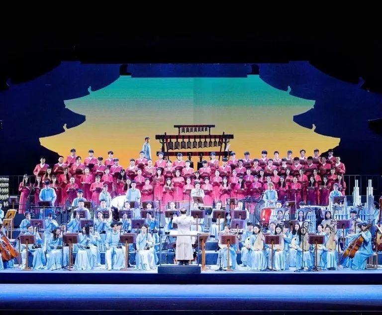 以宋韵为主题的大型民族交响音画《宋韵·华章》在浙江音乐学院隆重上演,以宋代文人的视角引入,以词入音,结合绘画、舞蹈、哲思等美学思想将宋代文人的精神内核“意境之美”传承延续。四个乐章以不同的音乐体裁,结合艺术歌曲、合唱、独奏、协奏等多种手法展现了宋韵的至纯至雅。无论是虚静高雅的古琴,还是低沉坚定的大鼓,亦或是清脆悦耳的编钟,都在远近虚实里将观众带入诗酒相和、谈文论画的宋代风雅。