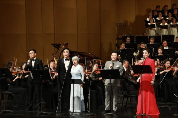音乐会在著名指挥家张国勇执棒兰州交响乐团带来的管弦乐《轻骑兵序曲》中拉开帷幕。随后,著名古筝演奏家、金钟奖评委王中山带来的古筝与乐队《满江红》,著名女高音歌唱家、金钟奖评委王庆爽演唱的《洪湖水浪打浪》《答卷》,著名竹笛演奏家唐俊乔演奏的笛子与乐队《挂红灯》,著名男高音歌唱家、金钟奖评委石倚洁演唱的《你是我的一切》《我爱这土地》,著名琵琶演奏家赵聪带来的琵琶与乐队《丝路飞天》,著名男高音歌唱家、金钟奖评委王宏伟演唱的《天路》《天下黄河十八道湾》,著名二胡演奏家、金钟奖评委于红梅带来的二胡与乐队《蒙山沂水情》,著名抒情花腔女高音歌唱家、金钟奖评委迪里拜尔演唱的《一杯美酒》《民族复兴》,著名男中音歌唱家、金钟奖评委廖昌永演唱的《斗牛士之歌》《我和我的祖国》等精彩节目轮番上演,给现场和线上观众带来了一场民族风格鲜明、中西文化交融的音乐盛宴。音乐会最后,廖昌永、迪里拜尔、王宏伟、石倚洁、王庆爽与兰州音乐厅合唱团带来了领唱与合唱《我爱你,中国》,将现场气氛推到高潮,伴着观众经久不息的掌声,音乐会圆满落下帷幕。