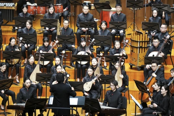 北京民族乐团2021年原创民族交响诗《大运河》第四乐章《舟楫通南北》(郑阳 曲)将中国传统音乐与西域音乐元素交相融合;舞剧《梦回大唐》第三幕--民族管弦乐《音诗--梦浴华清》(韩兰魁 曲)以舞蹈语汇为律动,诗意地刻画了唐代爱情故事。