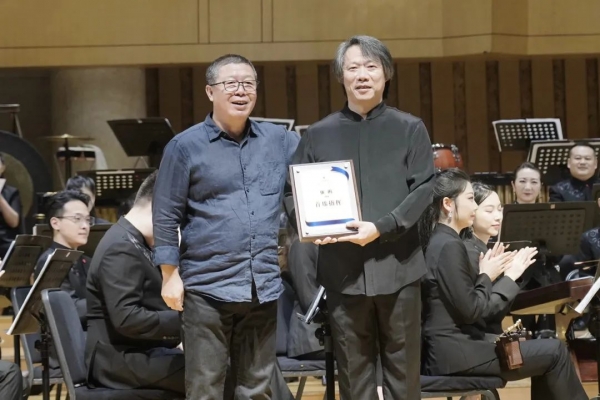 图|北京民族乐团团长李长军为首席指挥张鸣颁发聘书