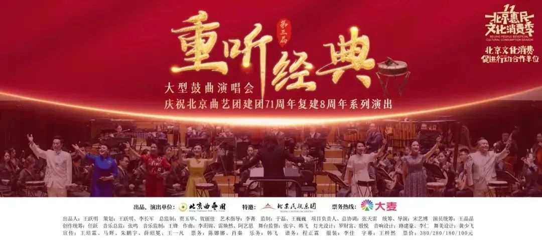 第三届《重听经典》大型鼓曲演唱会将借鉴我团经典情境鼓曲《尚·韵》的音乐作为序和尾声的作品,致敬北京曲艺团多年来在传统上的坚守,在艺术上的创新精神。