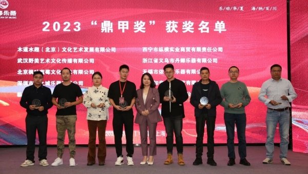 乐海乐器有限公司首席执行官宋华女士为获得者颁发奖杯