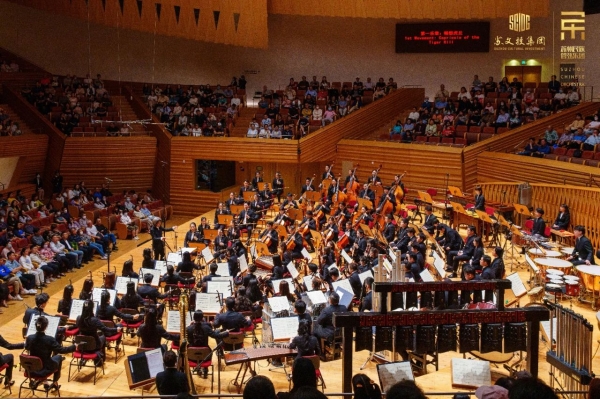 音乐会由第一乐章《畅想虎丘》拉开序幕,曲笛独奏如苏州园林中的溪流,蜿蜒曲折、高低起伏,烘托出慢板“江南”的主题,将历史娓娓道来,唢呐齐奏与编钟忽而对白交错,又将观众拉入到战火纷飞的古战场,气氛变得紧张而扣人心弦……随后,《江枫晓月》转而以简洁的旋律、悠远的意境,营造出和谐、平静、超然的氛围。