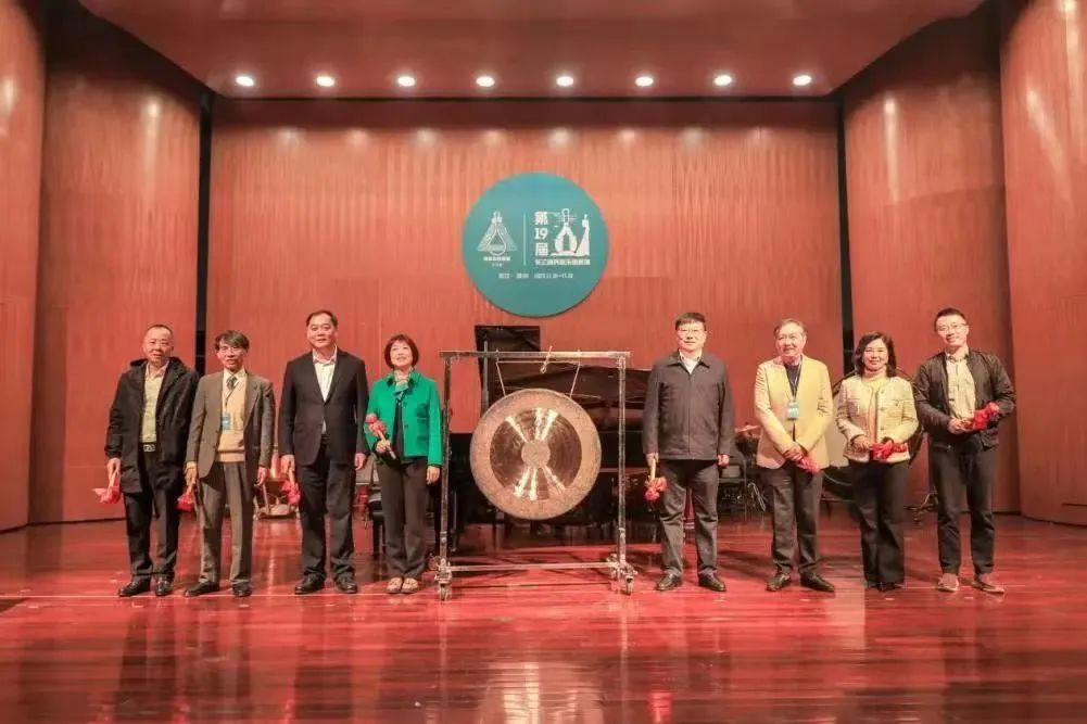 上海市艺术教育委员会副主任李瑞阳,湖州市人大常委会副主任闵云,湖州师范学院党委副书记陈永华,浙江省音乐家协会主席翁持更,上海音乐家协会副秘书长秦焱,湖州市文联党组书记、主席覃泓,上海音乐学院教授(长三角民乐展演创始人)王永德和湖州民革企业家联谊会会长冯坚等领导嘉宾共同为第19届长三角民族乐团展演活动“鸣锣开幕”!