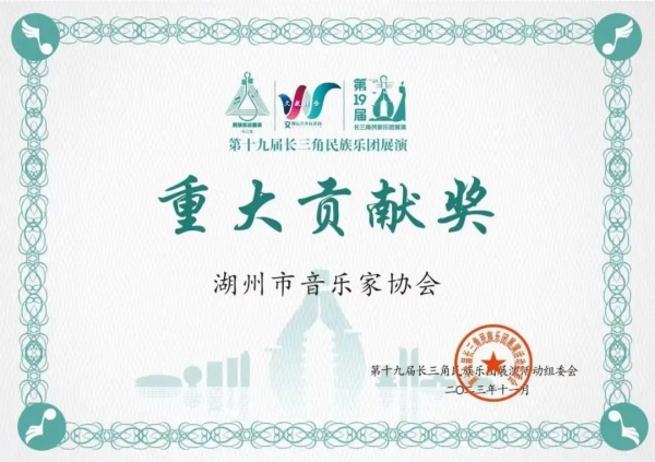 闭幕式上,组委会特别授予湖州师范学院音乐学院、湖州市音乐家协会“重大贡献奖”。