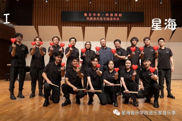 接下来星海音乐学院国乐团的同学们给大家带来了一段广东风俗器乐小品《粤茶·娱乐生平》。此作品把广东曲艺、广东说唱与音乐结合,让我们更好的领会岭南风格、广东传统音乐。运用了多种从广东传入中国的民族器乐,用音乐小品的方式来表现广东的市面生活。