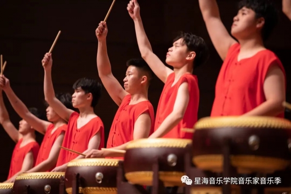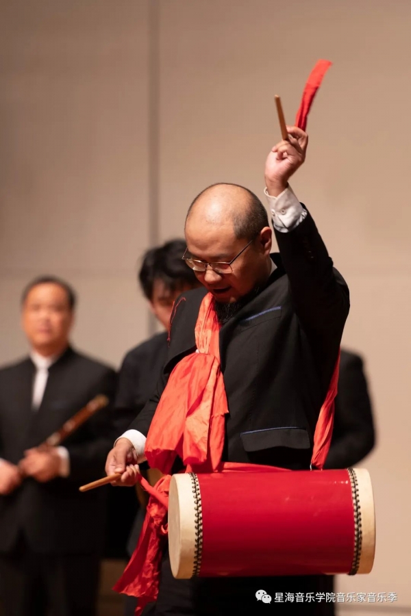 开场是由星海音乐学院国乐团给我们带来的绛州鼓乐《黄河船夫曲》,此曲高亢奋进,带有强烈的岭南风格,演员们夸张精彩的肢体动作、山歌与磅礴的打击乐相结合,震撼无比、锣鼓声响彻整个音乐厅,这场大型室内民族乐由此拉开帷幕。
