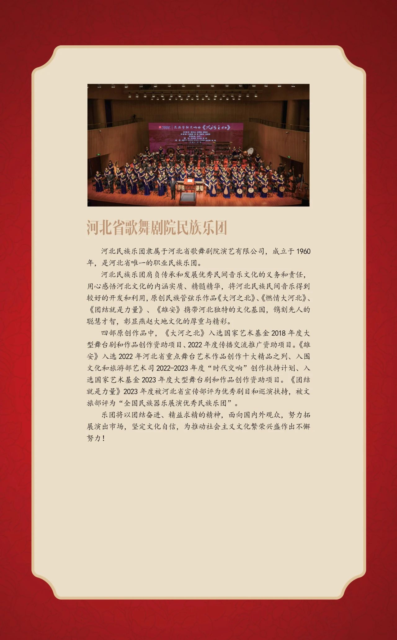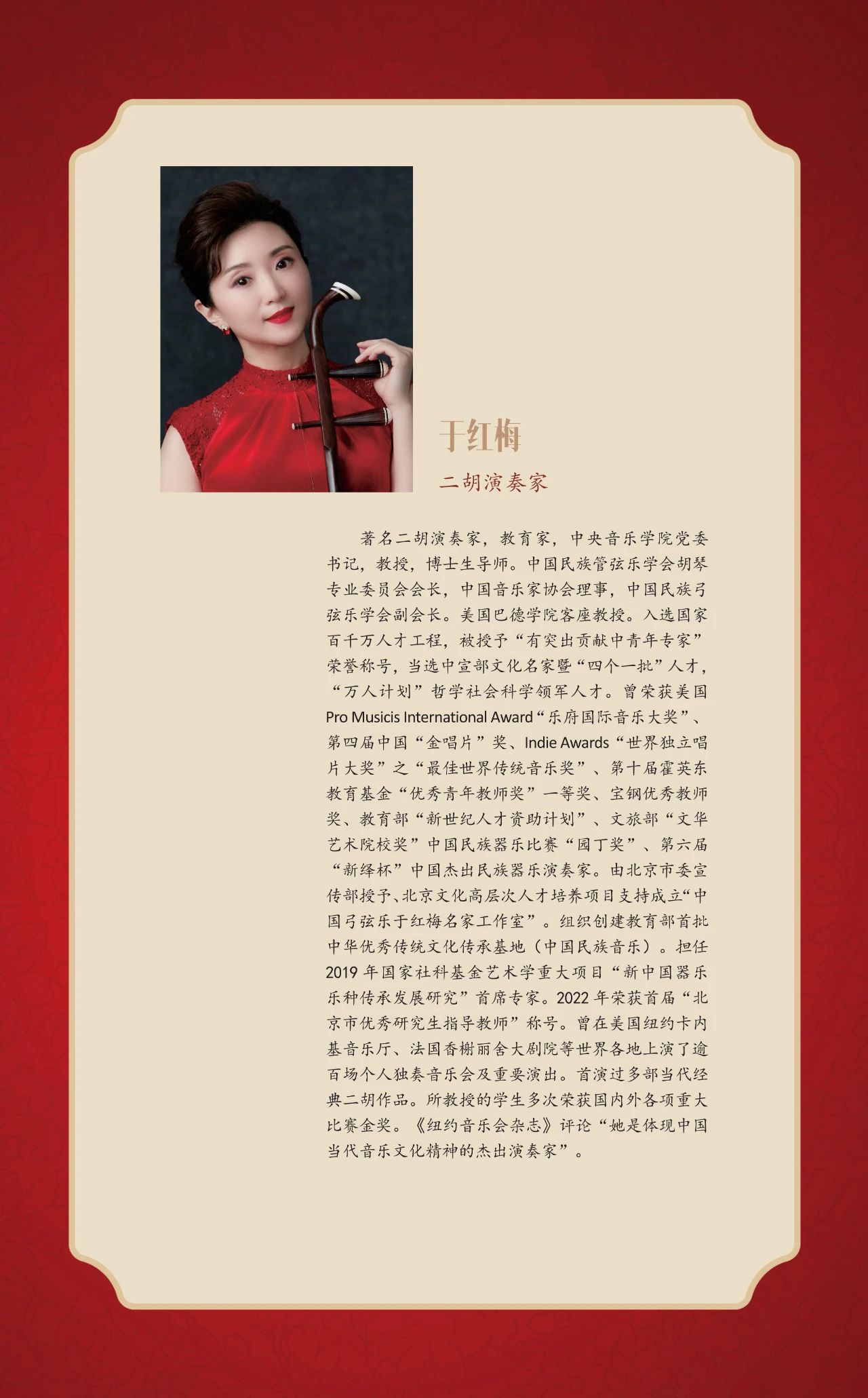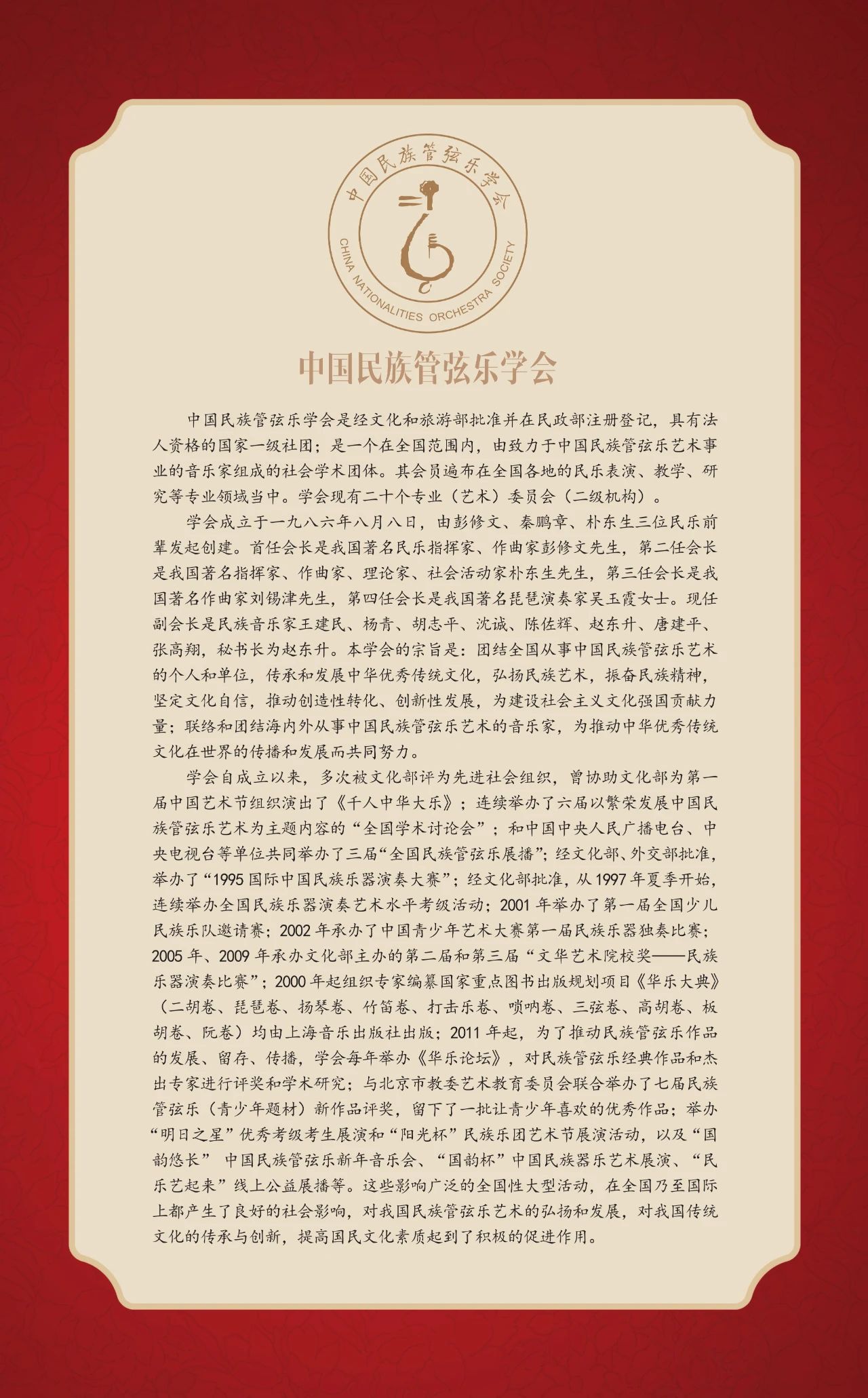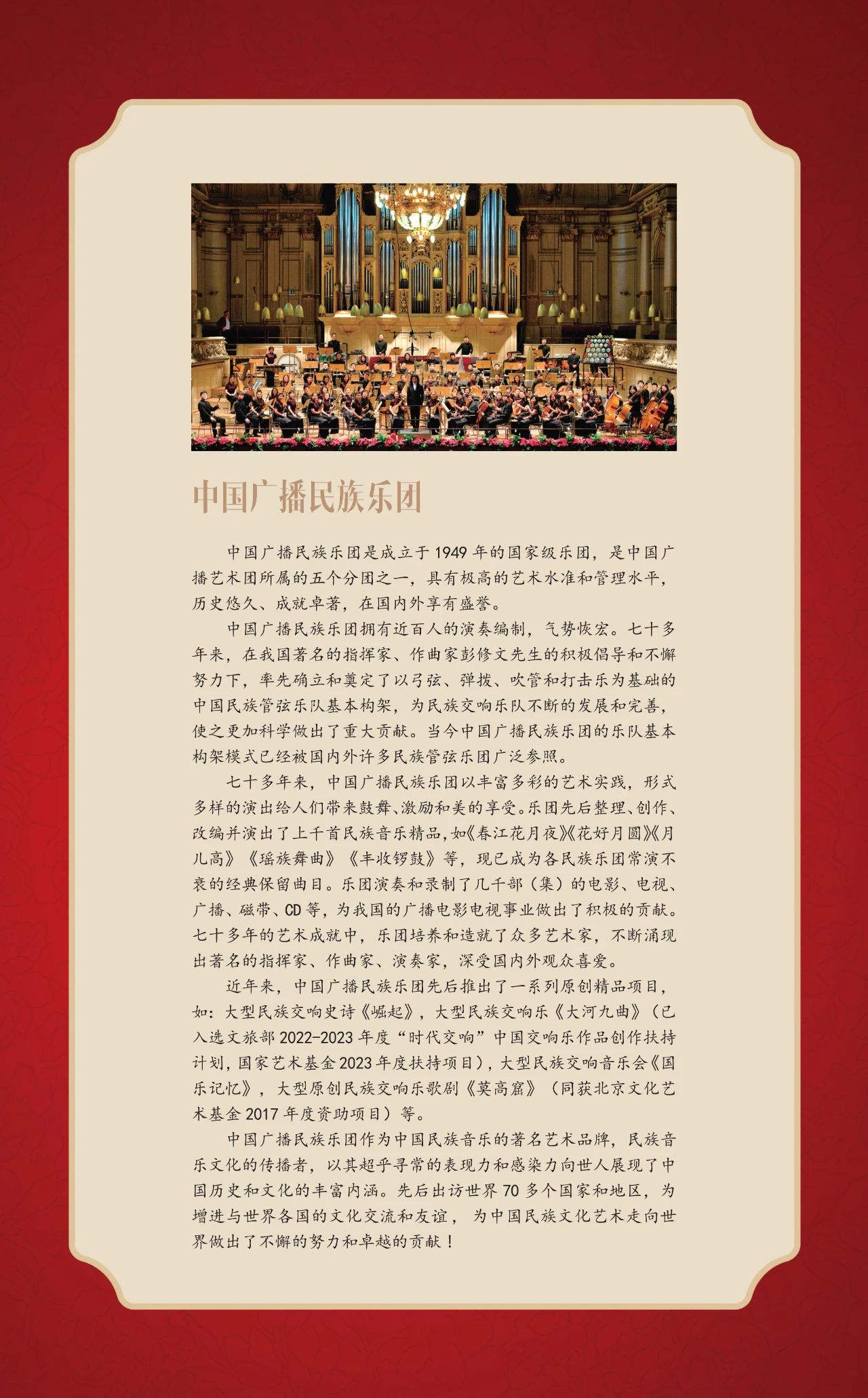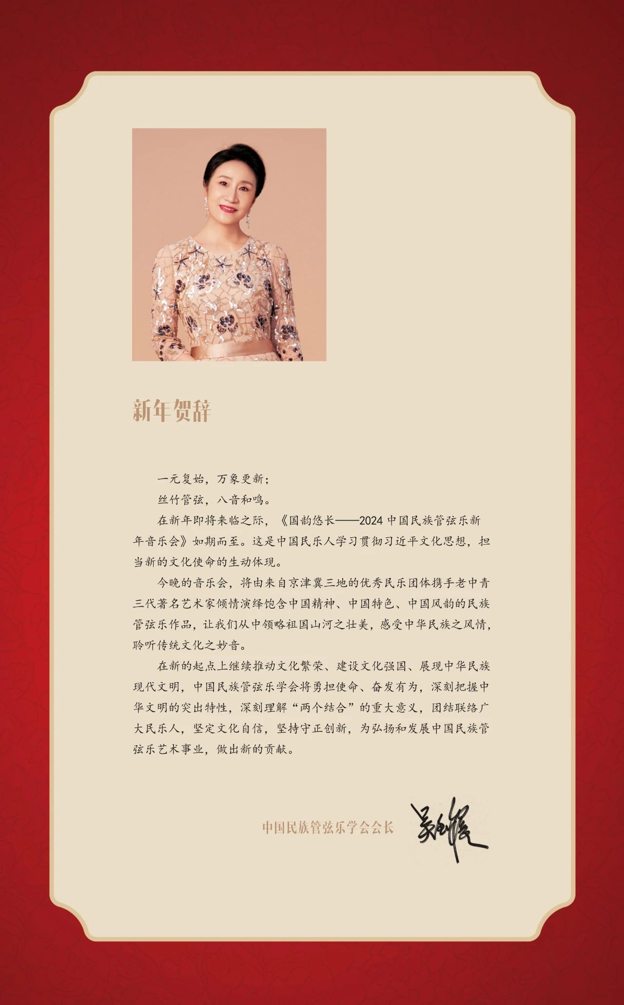 “国韵悠长“将多代际民乐人汇聚一堂,多维度展示出中国民乐界健康向上的艺术环境和音乐人才生生不息的接力。中国民族管弦乐学会会长吴玉霞表示:“在新的起点上继续推动文化繁荣、建设文化强国、展现中华民族现代文明,中国民族管弦乐学会将勇担使命,团结联络广大民乐人,坚持文化自信和守正创新,为弘扬和发展中国民族管弦乐艺术事业,做出新的贡献。”一代代民乐人根植于中华民族优秀的文化土壤,在民族文化心理和审美意识的作用下,于不同的环境、语境、处境中主动建构属于中华民族音乐文化的主体表述和发展逻辑。上下求索、躬耕不辍、立足当代、对话未来,怀揣颗颗真诚与热爱之心为属于中国民乐人的作品执笔。